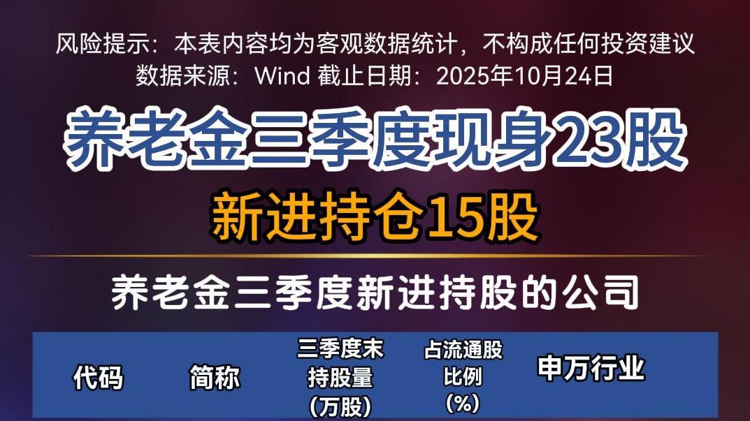 養(yǎng)老金最新三季度現(xiàn)身23股,新進(jìn)持倉(cāng)15股!#...