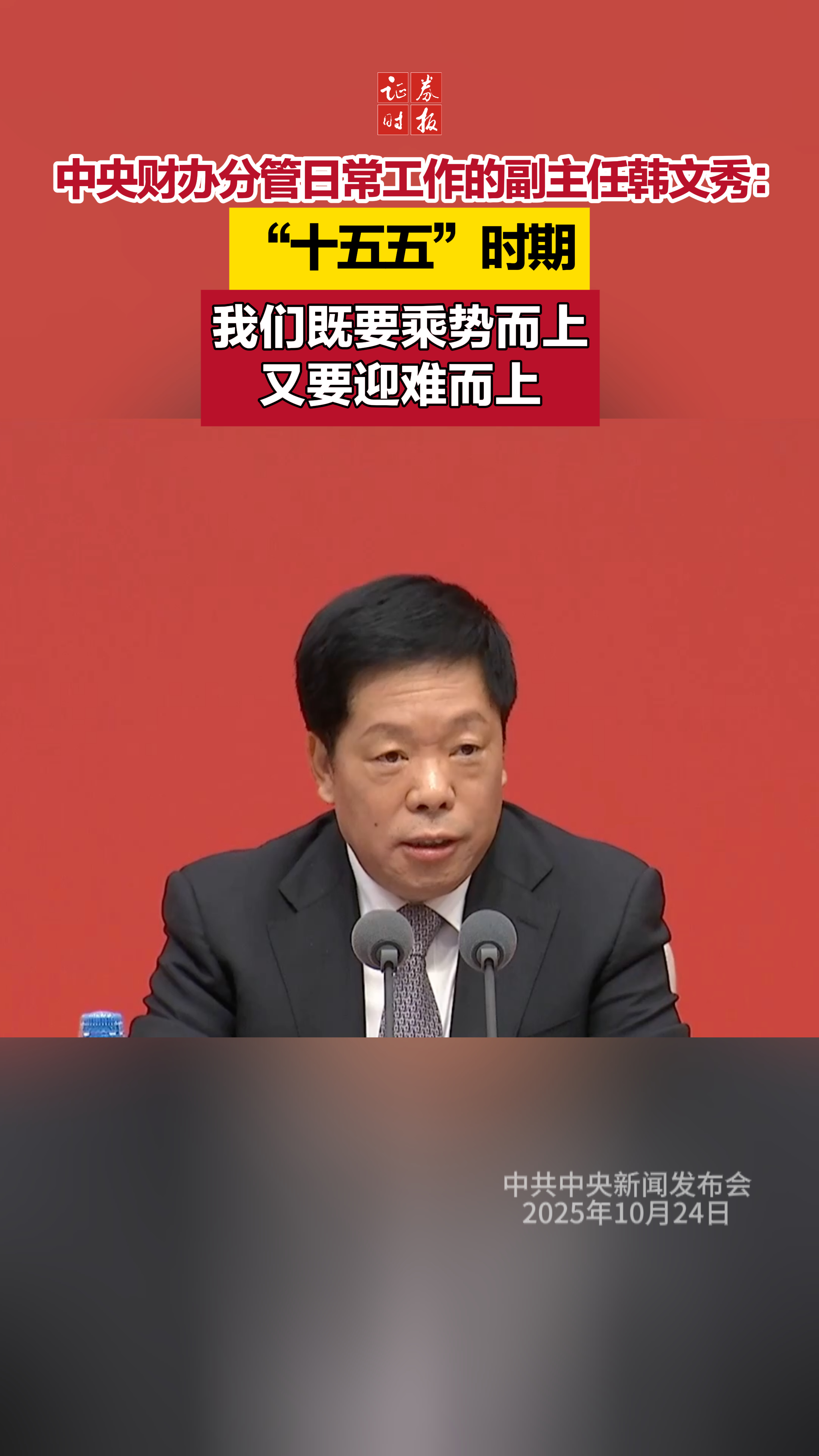 中央財辦分管日常工作的副主任韓文秀:“十五五”時期,我們既要乘勢而上,又要迎難而上