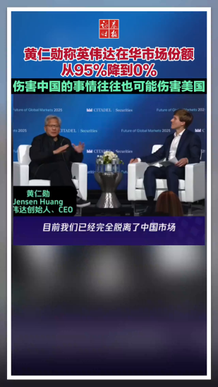 黃仁勛稱英偉達在華市場份額 從95%降到0%...
