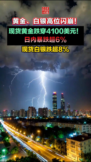 高位閃崩!現(xiàn)貨黃金跌穿4100美元!日內暴跌超...