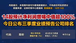 14股預(yù)計凈利潤增幅中值超100% 今日公布三季度業(yè)績預(yù)告公司排名